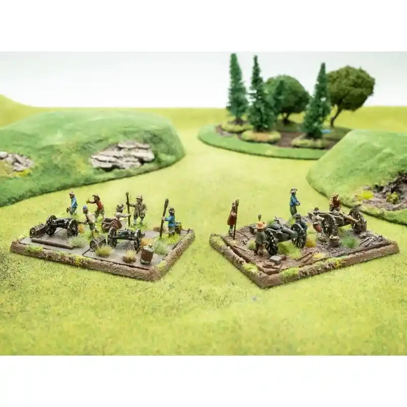 Jádro polního dělostřelectva tvořila lehká tříliberní (plukovní) děla a střední šestiliberní děla. Při obléhání se používalo těžké dělostřelectvo a minomety. Tříliberní plukovní děla byla pracovním koněm války; byla snadno přemístitelná, takže mohla doprovázet pěchotu. Díky tomu lehká mobilní děla připojená k pěším eskadronám (brigádám) podstatně zvyšovala jejich palebnou sílu (grapeshot). V mnoha taktických situacích měla palba z děl na bojišti větší dopad než palba z mušket.