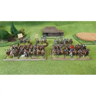 All units in this set have bases, movement trays and - when required - also spears/pikes and banners. Miniatures are made of metal, horses are made of plastic. All miniatures require gluing and are unpainted. Contents may vary from picture shown.