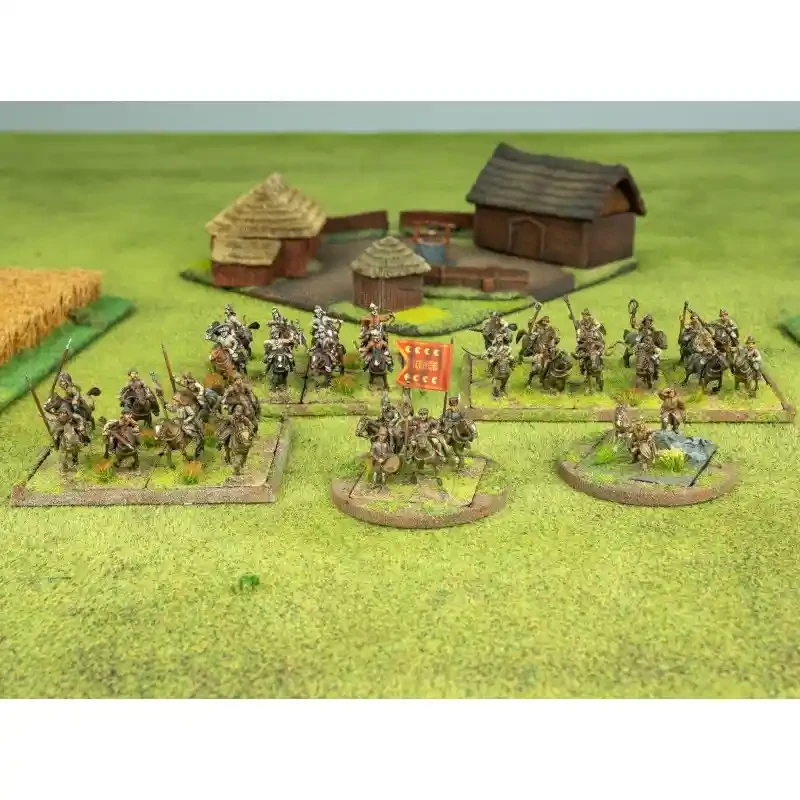 All units in this set have bases, movement trays and - when required - also spears/ pikes and banners. Miniatures are made of metal, horses are made of plastic. All miniatures require gluing and are unpainted. Contents may vary from picture shown.