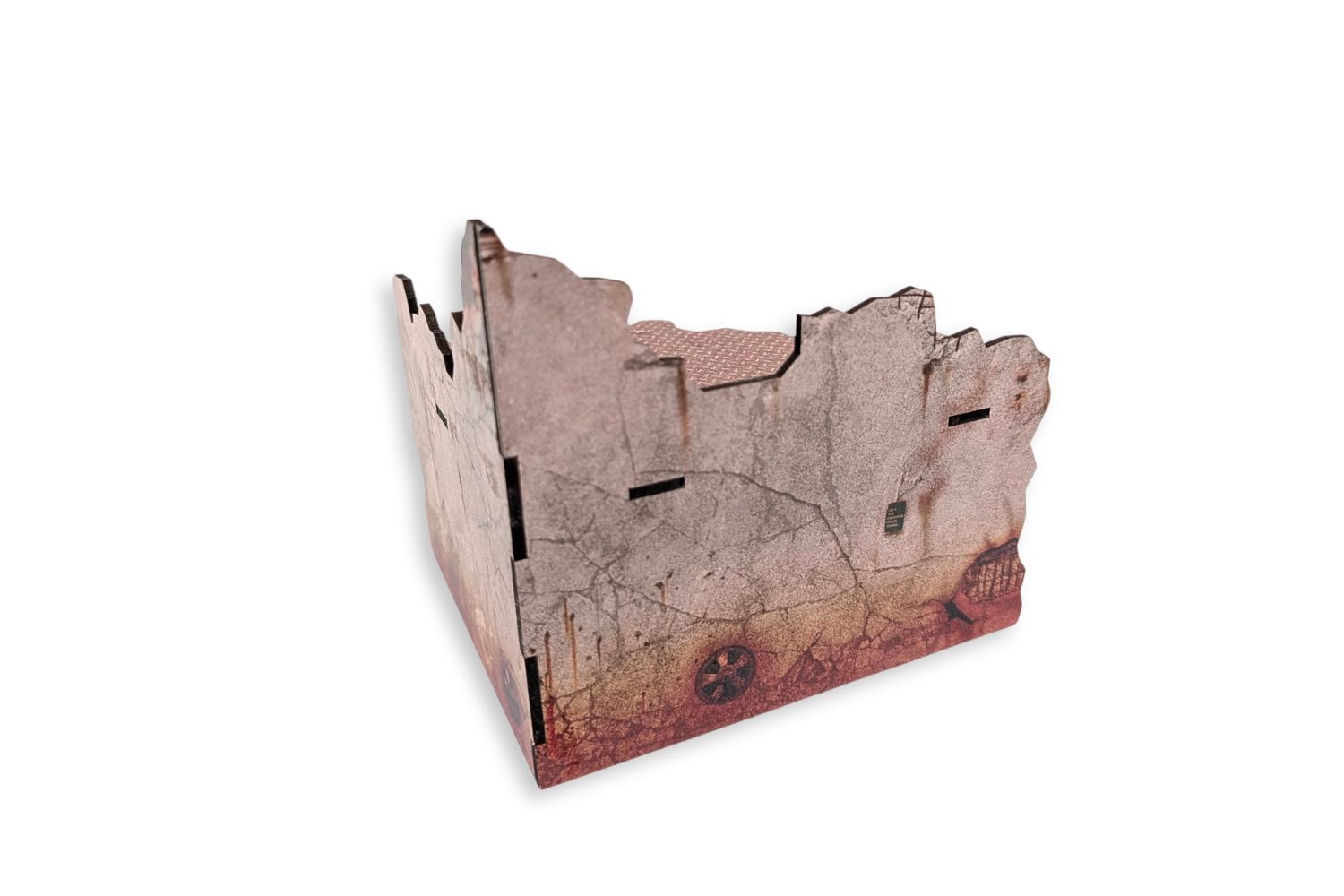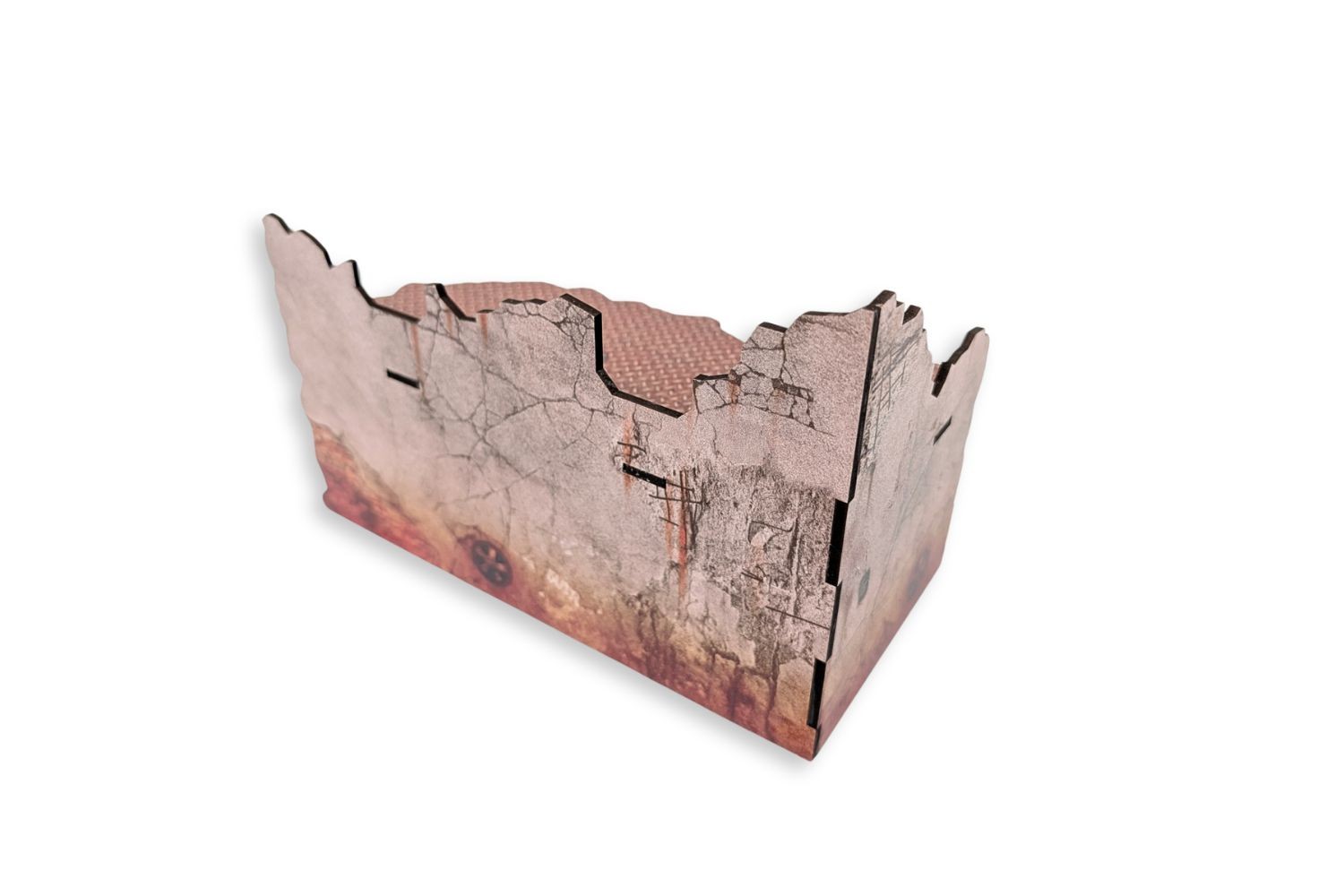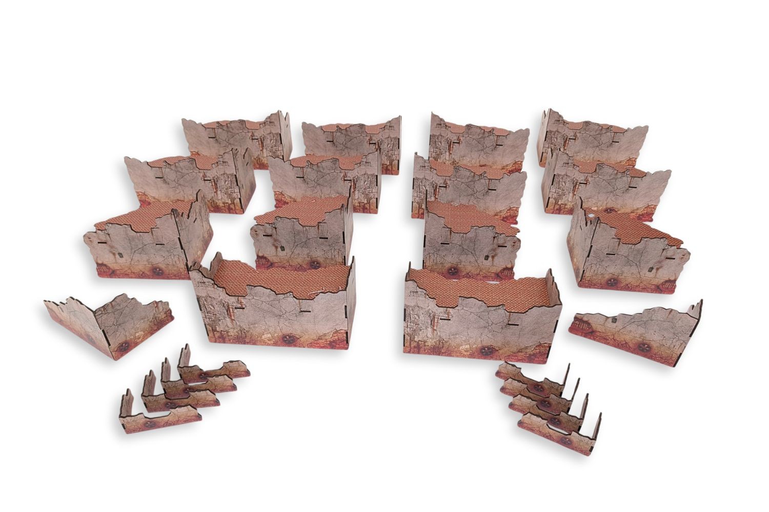 Build your battlefield in no time. This MDF terrain set comes with texture colours already printed, so no painting is needed once assembled. The vertical parts are printed on both sides. The kit requires assembly.