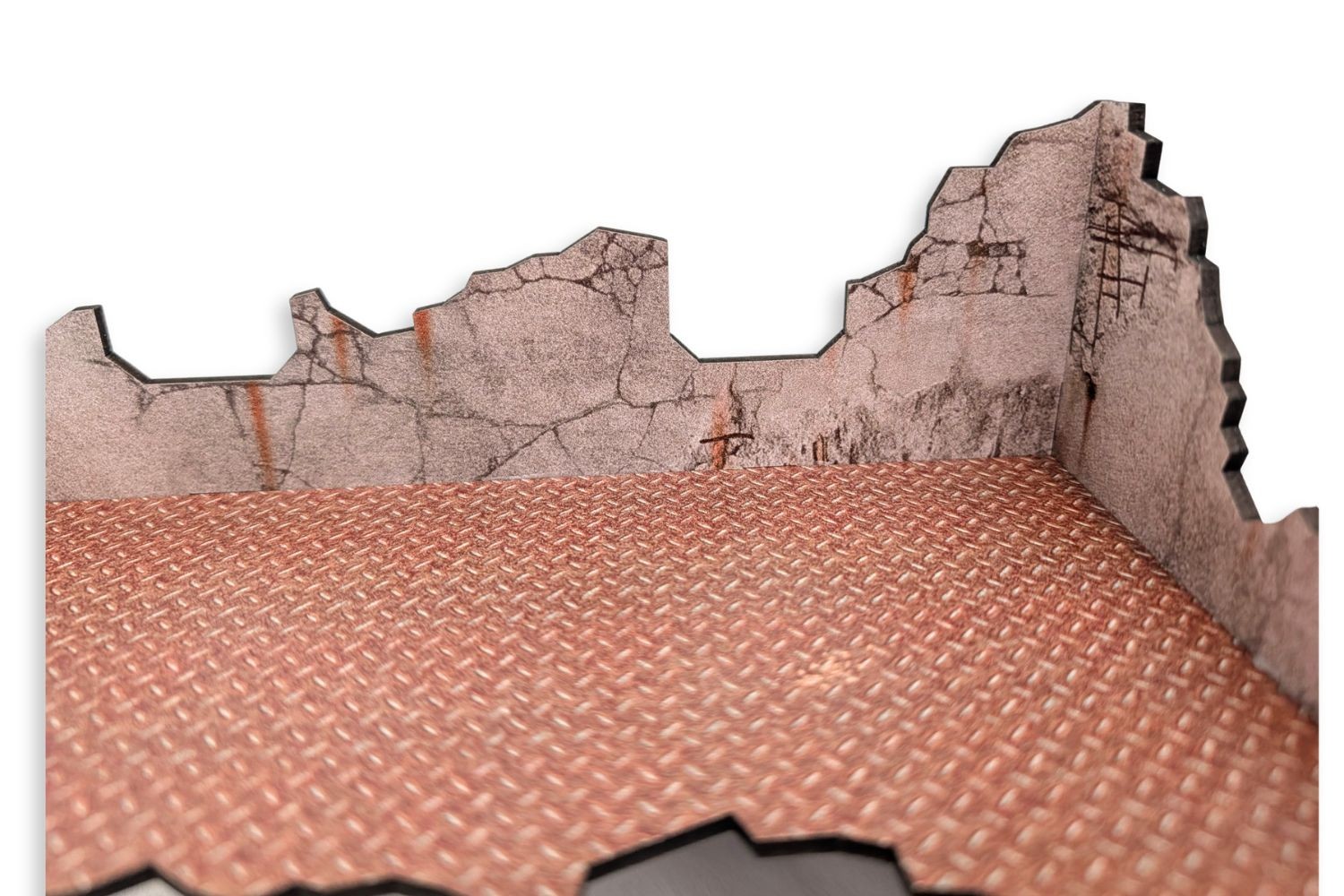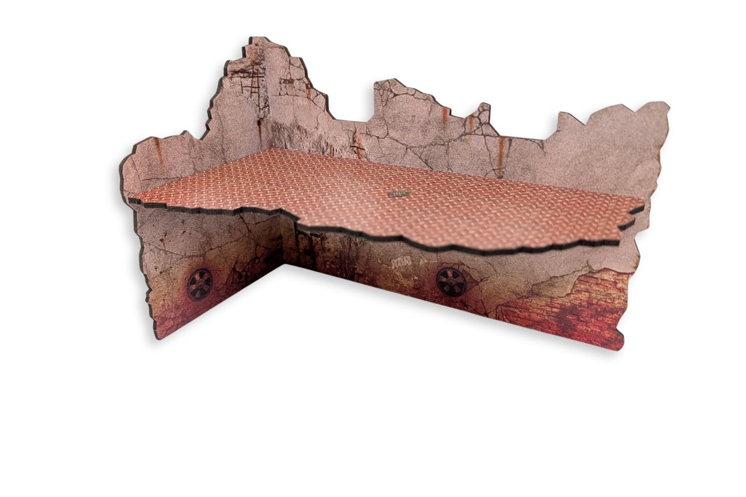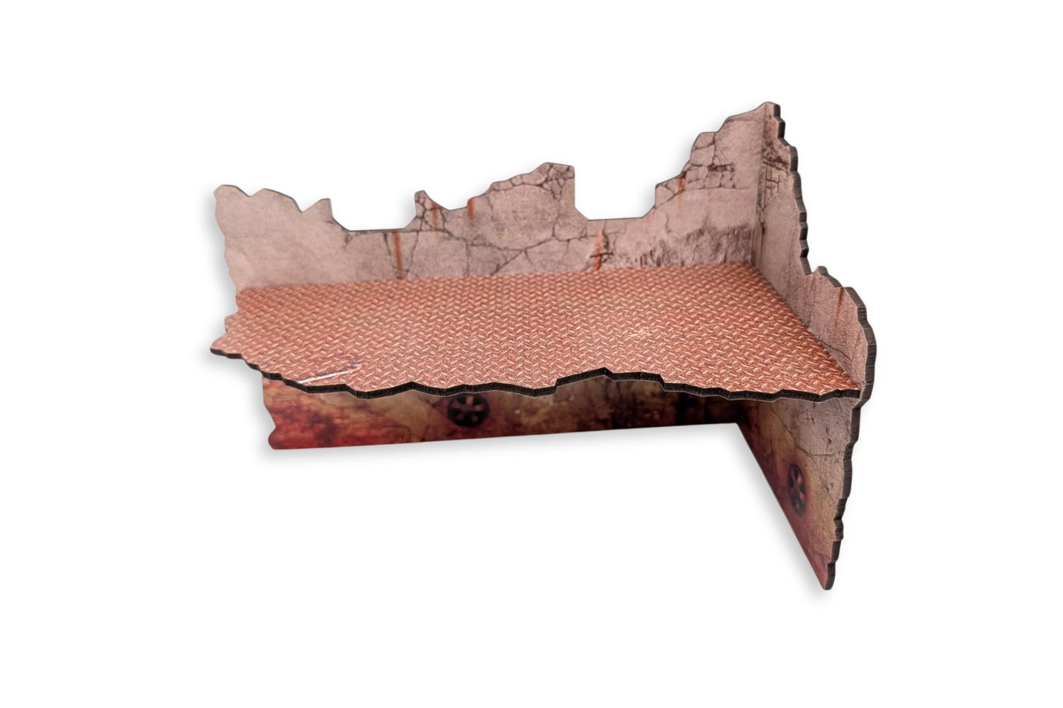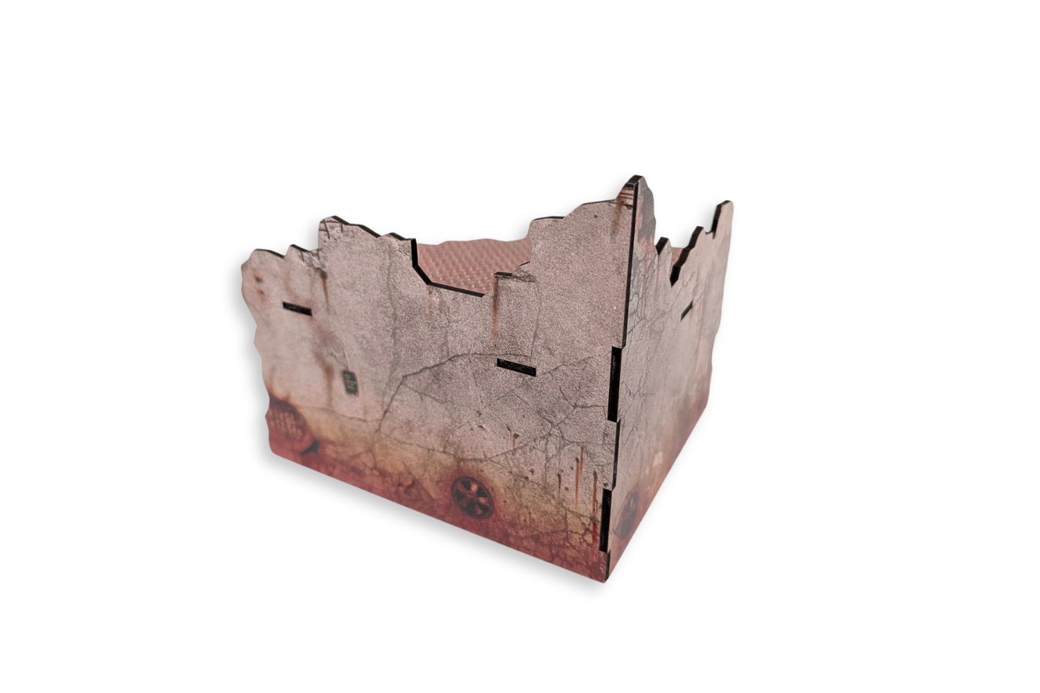 Build your battlefield in no time. This MDF terrain set comes with texture colours already printed, so no painting is needed once assembled. The vertical parts are printed on both sides. The kit requires assembly.