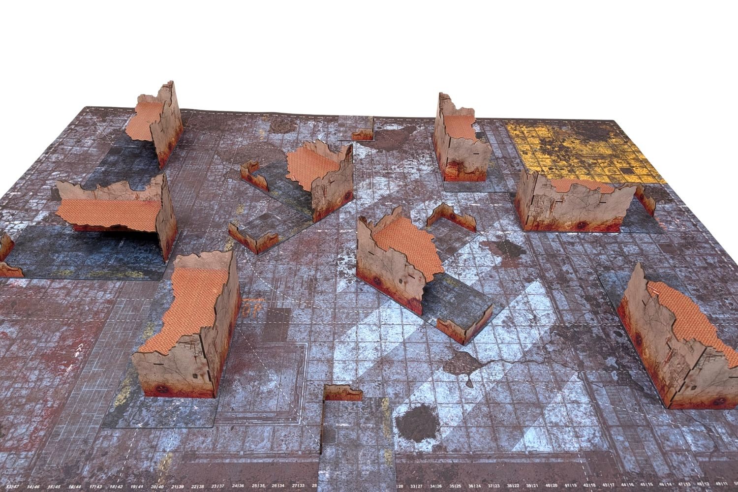 The set is designed to cover all eight Chapter Approved tournament layouts. Ruins can be assembled as left- or right-oriented.