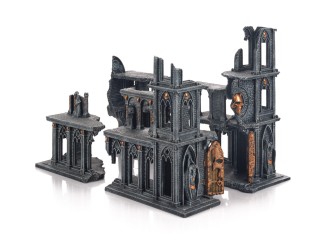 A complete set of pre-painted resin terrain for tabletop wargames. Ready for battle straight out of the box. The perfect scenery for games like Warhammer 40,000, Age of Sigmar, and Kill Team.