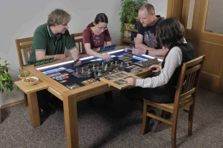Are you looking for ULTIMATE gaming and family table? Look no more! Inner area for boardgaming, covering boards to turn it into dining table or extended covering boards creating a vast wargamers area for your game of Warhammer