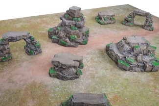 A complete set of pre-painted resin terrain for tabletop wargames. Ready for battle straight out of the box. The perfect scenery for games like Warhammer 40,000, Age of Sigmar, and Kill Team.