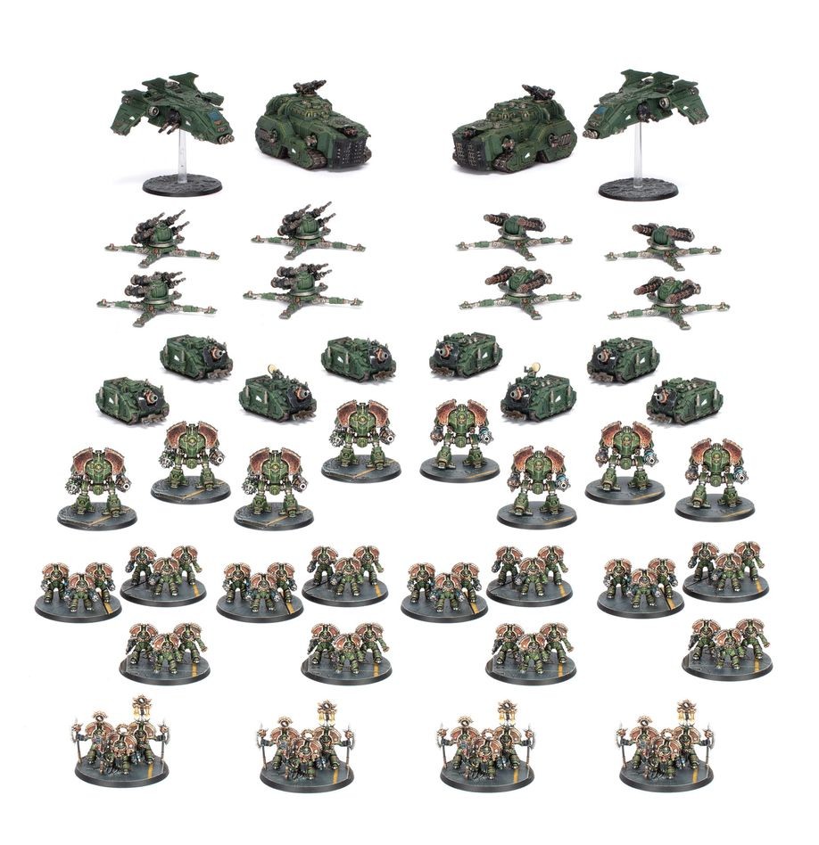 This packed boxed set is ideal for starting a new Legiones Astartes collection – or expanding an existing army – to unleash in games of Legions Imperialis, and save money compared to buying the kits separately. The force is built around a core of Saturnine Terminators – heavy elite infantry able to weather massive amounts of small arms fire, and dish out enough damage to punch far above their weight class. Supported by Saturnine Dreadnoughts, artillery, tanks, transports, and aircraft, they become a versatile army that will win you battles in the gruelling civil war.