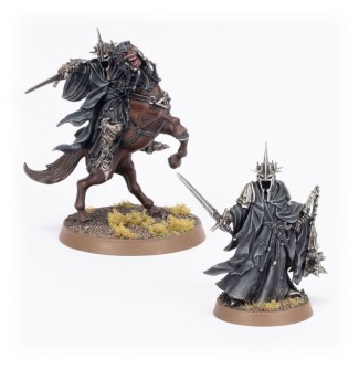 The Witch-king of Angmar is a multipart plastic kit supplied as 2 models, 1 on foot and 1 mounted atop a rearing steed. Both models feature options for a hooded head or one wearing the Crown of Morgul. The model on foot can be assembled with or without the dreaded Morgul Blade with which he stabbed Frodo at Weathertop, and he can be equipped with the Witch-king's enormous flail in addition to his ancient longsword.