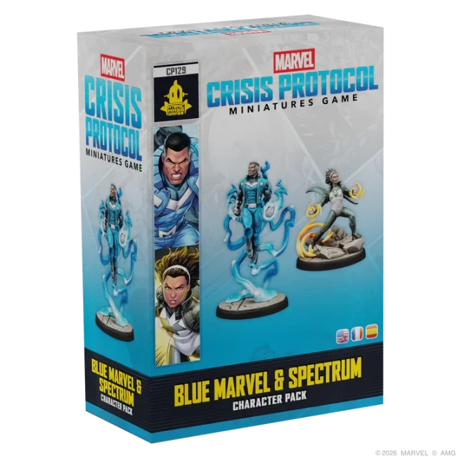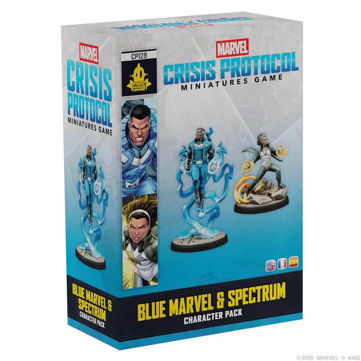 This pack brings two new characters to Marvel: Crisis Protocol, the powerhouse Blue Marvel and the leader of the Mighty Avengers Spectrum to the game. Spectrum adds a new Affiliation, the Mighty Avengers to the game with a new leadership that allows members of her squad to be able to transfer some of the Power they gain to their allies.