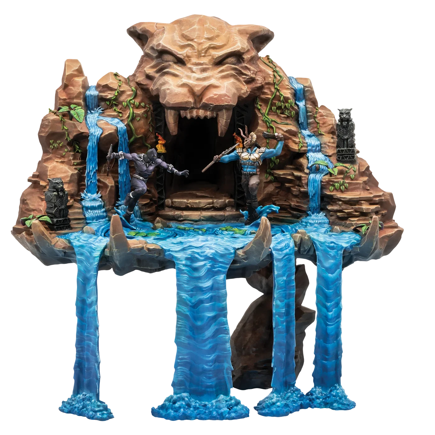 The throne of Wakanda is on the line in the latest Rival Panels pack for Marvel: Crisis Protocol! New versions of T'Challa and Killmonger battle for the throne on a beautifully sculpted waterfall terrain piece that can be customized with 4 optional plant pieces. In addition to the miniatures for both characters, players will also find holographic foil stat cards outlining all of their abilities in this pack, along with 4 new Team Tactic cards that further augment their abilities.