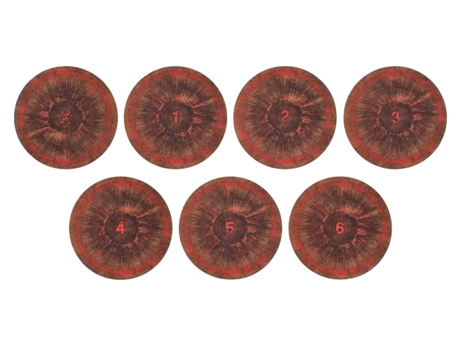 Clearly define the 3-inch scoring zone in your Warhammer 40,000 games. This complete set of 7 non-slip 'mousepad' material objective markers (numbered 1-6 & X) eliminates arguments and speeds up play.