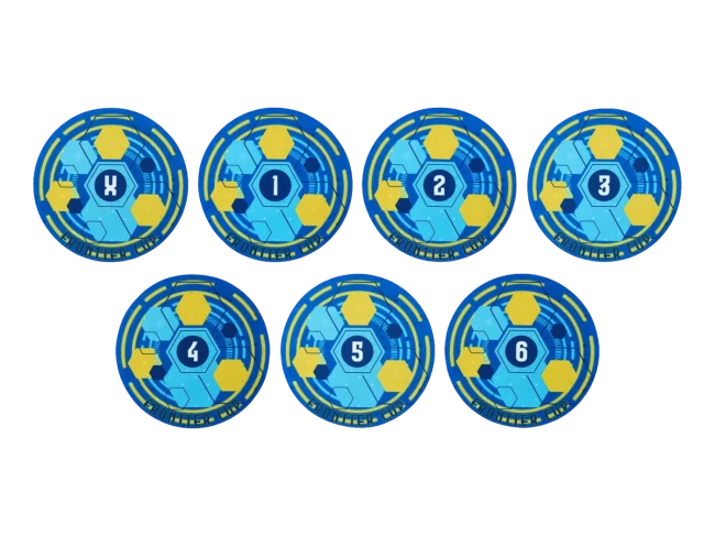 Clearly define the 3-inch scoring zone in your Warhammer 40,000 games. This complete set of 7 non-slip 'mousepad' material objective markers (numbered 1-6 & X) eliminates arguments and speeds up play.