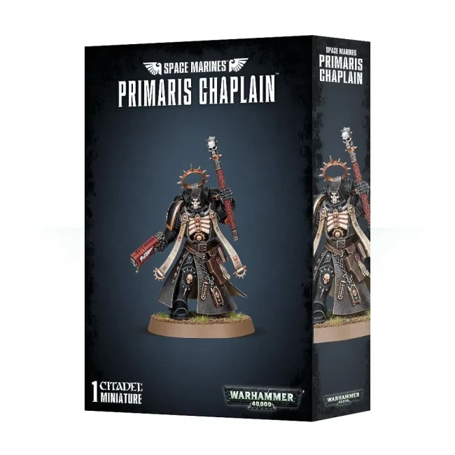 Set contains 1 plastic model of Primaris Chaplain in Mk.X Armour. Miniature is not assembled or painted.