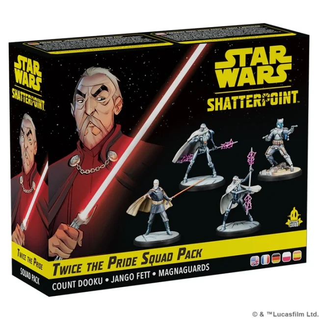 A sinister Sith Lord and his minions enter the duels of Star Wars: Shatterpoint! Once a respected Jedi Knight, and the padawan of Grand Master Yoda himself, Count Dooku has chosen the dark side, now serving as the apprentice to Darth Sidious himself. This pack adds a new squad of Count Dooku, Jango Fett, and two IG-100 MagnaGuards to Star Wars: Shatterpoint that players can play right away or use alongside other characters to create their own custom squad. In addition to the beautifully sculpted miniatures of all four characters, players will also find all the stat, order, and stance cards they need to bring these characters to life on the tabletop.